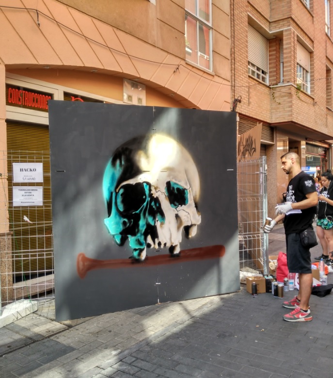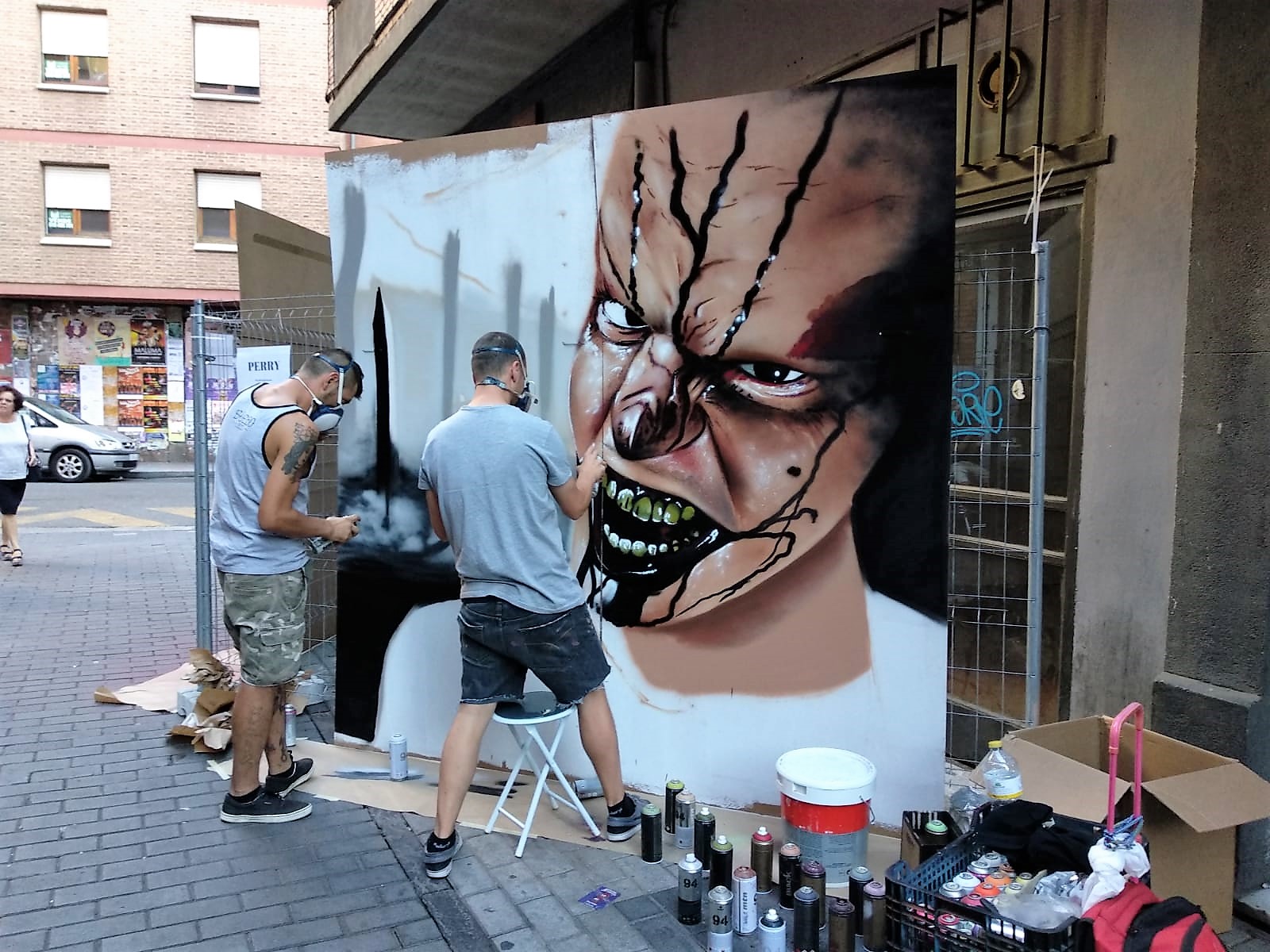 Durante las dos jornadas de la Muestra, sábado 1 y domingo 2 de Septiembre, se juntaron en esa calle más de 25 artistas entre tatuadores, muralistas y músicos, mostrando en vivo y en directo lo que mejor saben hacer, puro arte. De entre tanto talento, quedaron para la posteridad unas obras de mucha calidad, que formarán parte de la Exposición de Arte Urbano a través de los bares.
